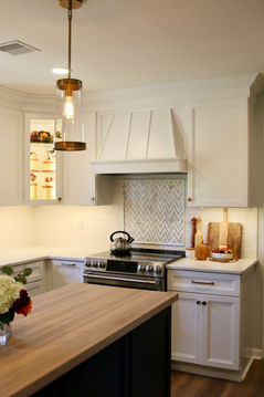This kitchen went from tired to timeless, bright white cabinetry, a warm wood island that grounds the space, and those brass pendants stealing every spotlight. The chevron backsplash adds a little “hello, personality,” while the overall vibe says come on in and stay awhile. Classic, cozy, and just the right amount of fancy.